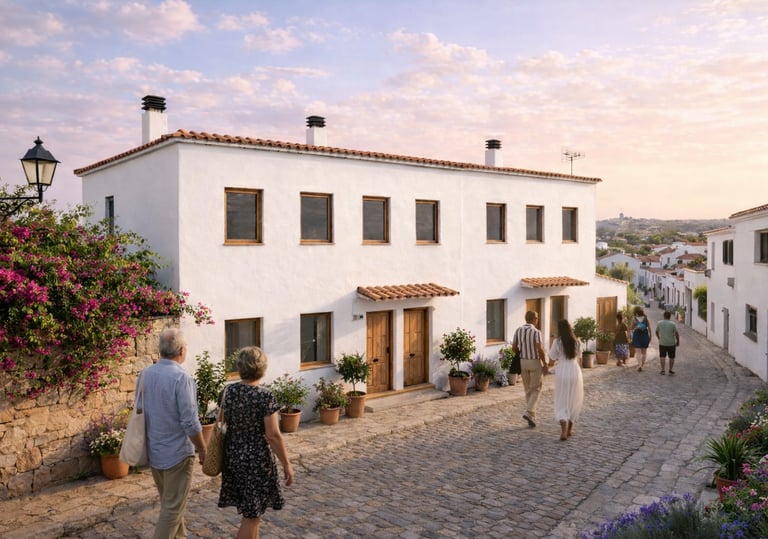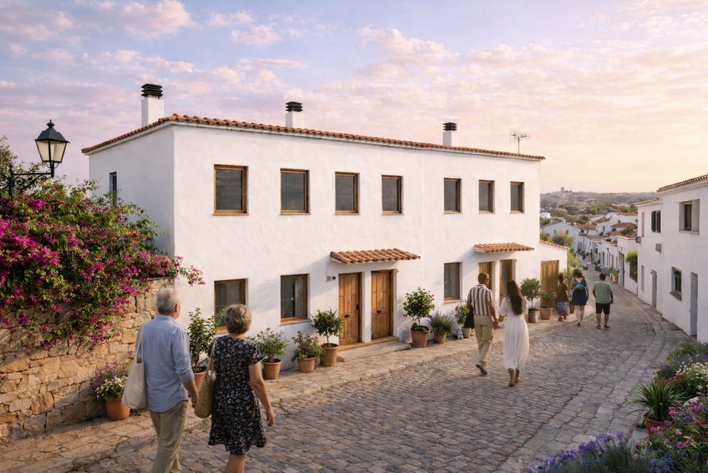La misma casa integrada en un pueblo y convertida en una casa de dos plantas adosada.