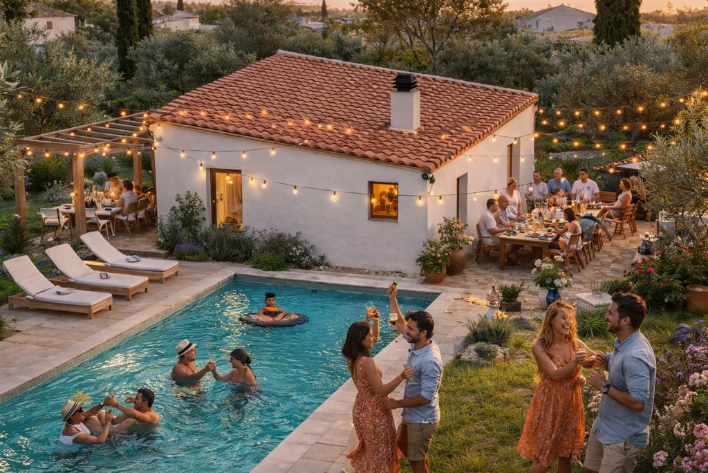 En esta versión para urbanizaciones de estilo moderno mediterráneo con piscina.