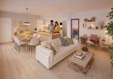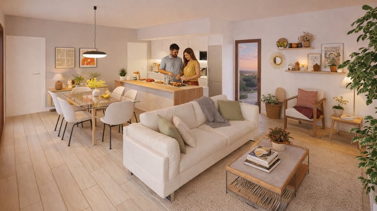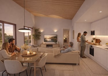 El interior del salón conectado con la cocina abierta permite disfrutar con los amigos y la familia, de momentos inolvidables.